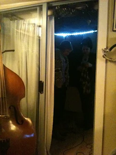 Here is my sneaky snap from that, you can just see them off in the darkness of the vocal booth.....